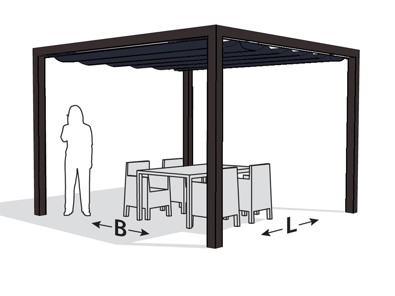 Notranja dolžina pergole naj bo 297 / 397 cm.