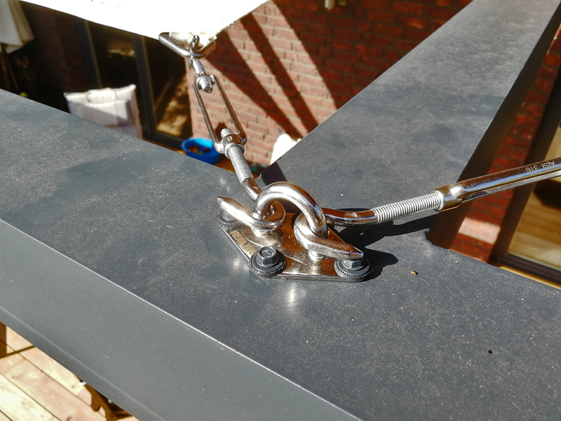 Za najboljši rezultat pri namestitvi vaše SONČNE ali NEPREMOČLJIVE ponjave uporabite samo kakovostni pritrjevalni material. Glede na to, kje želite ponjavo namestiti, je potrebno določiti primeren pritrjevalni material. Na vsakem vogalu mora biti en napenjalnik.