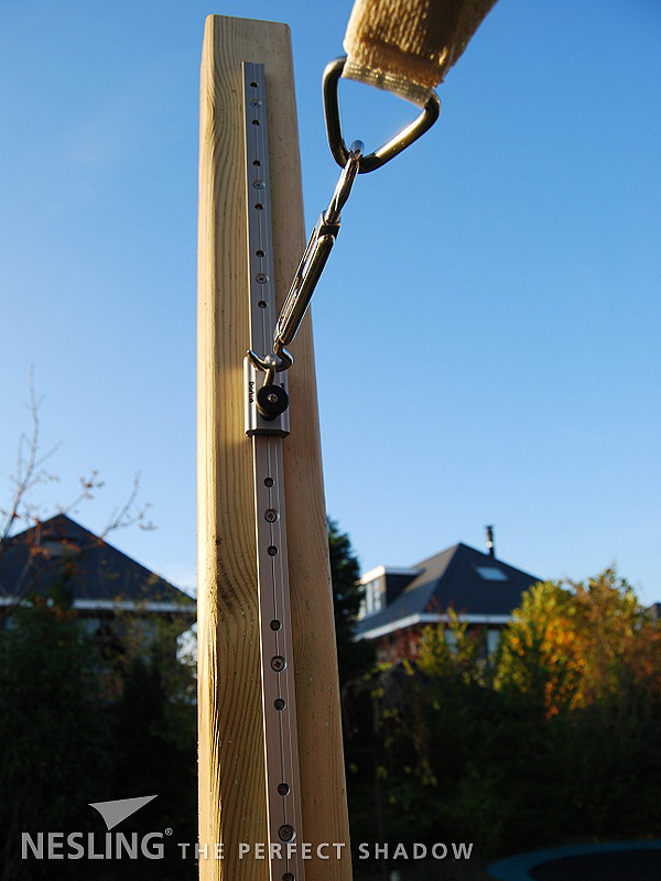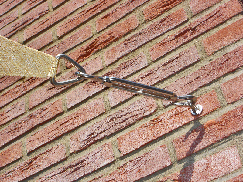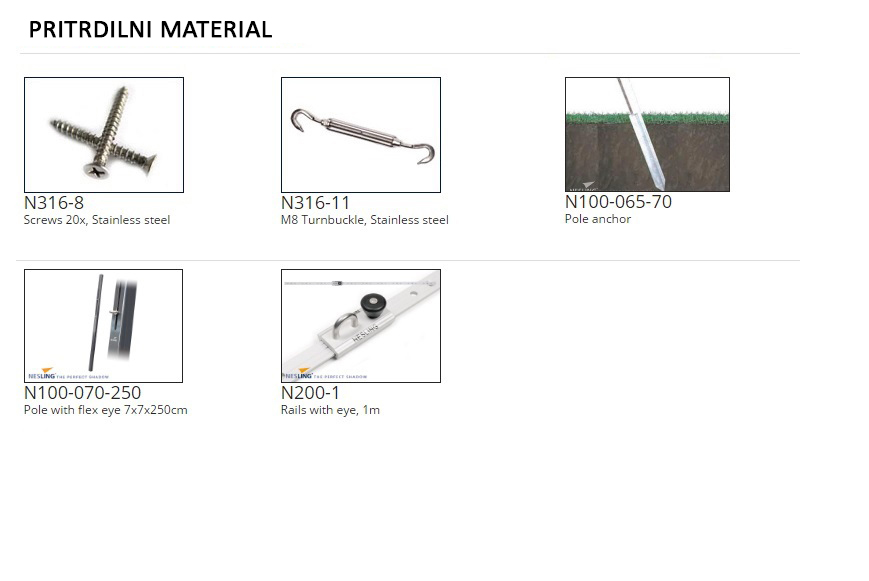 Za najboljši rezultat pri namestitvi vaše SONČNE ali NEPREMOČLJIVE ponjave uporabite samo kakovostni pritrjevalni material. Glede na to, kje želite ponjavo namestiti, je potrebno določiti primeren pritrjevalni material. Na vsakem vogalu mora biti en napenjalnik.